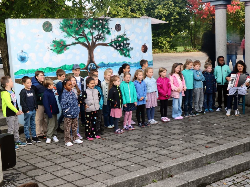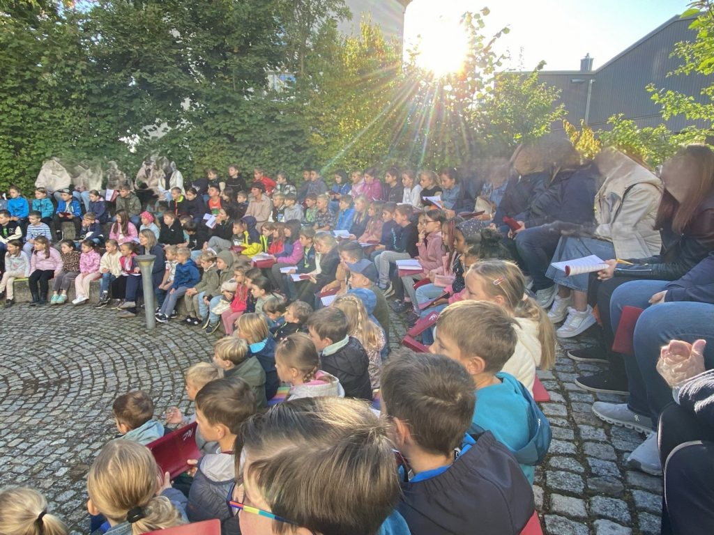 sangen die beiden zweiten Klassen ein fröhliches Begrüßungslied für alle „Neuen“.