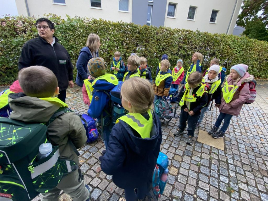 Zuerst stellten sich die Kinder der Klasse 1a von Frau Herz in einer Zweierreihe auf,