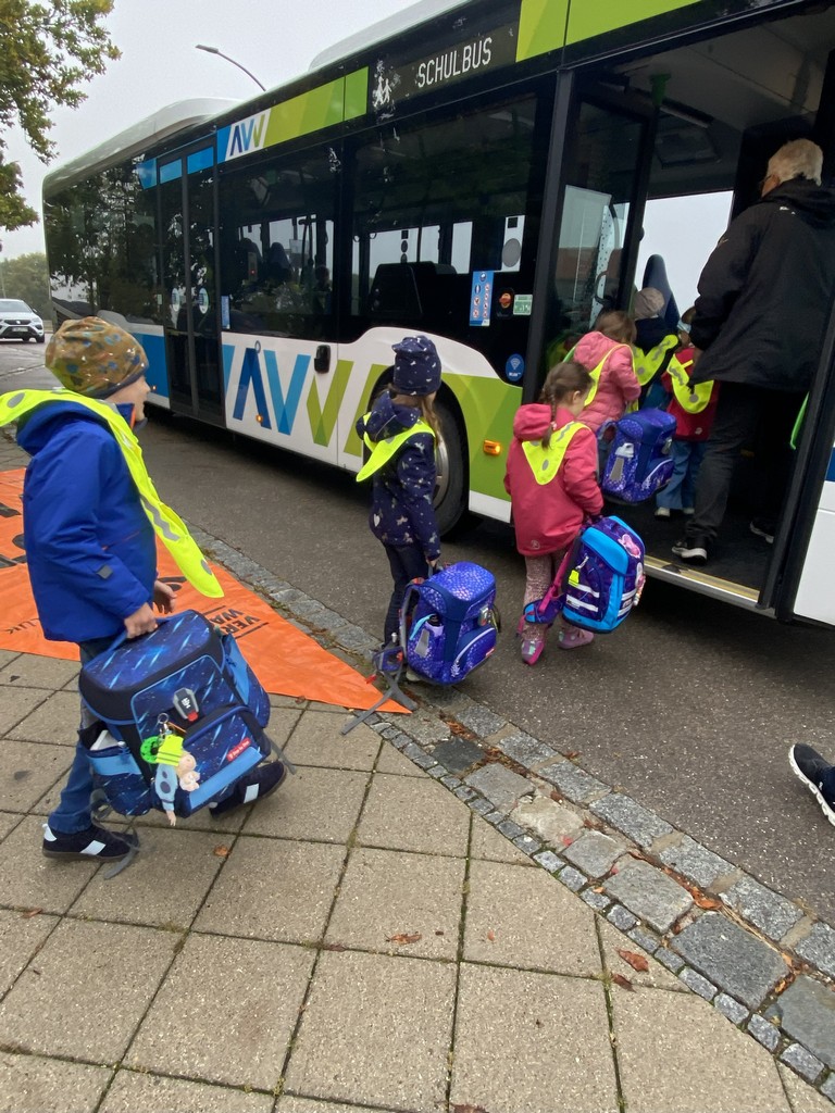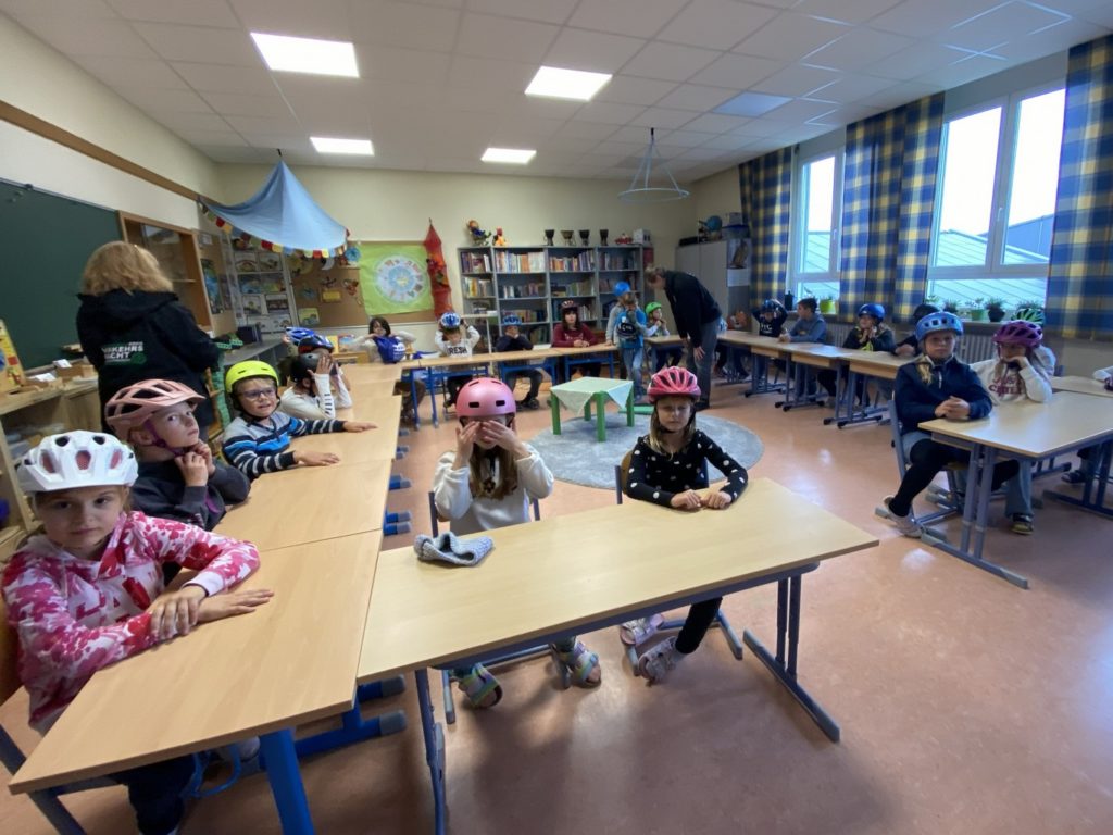 Wie jedes Jahr besuchte die Verkehrswacht die Schule, um mit den Mädchen und Buben der ersten und dritten Klassen wichtige Verkehrsregeln und beim Busfahren zu besprechen,