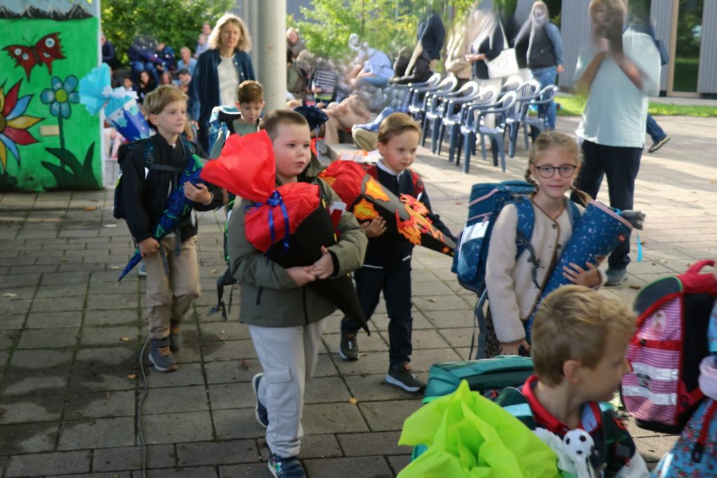 bevor sie von den Drittklässlern in ihr Klassenzimmer geführt wurden.