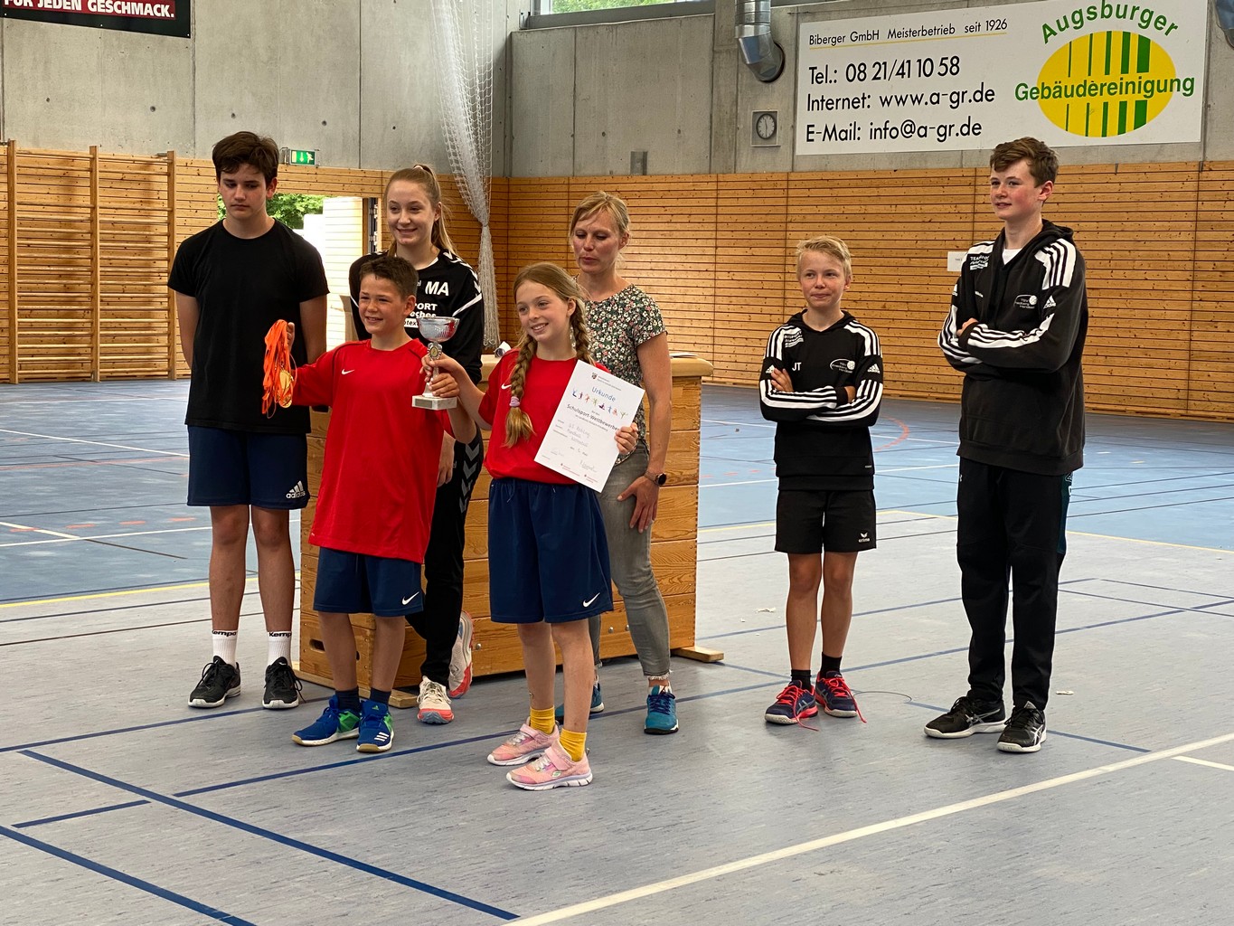 zum Teil sogar mit zweistelligem Abstand. So war es kein Wunder, dass sie beim „kleinen Finale“ gegen die bis dahin ebenso starke Mannschaft der Grundschule Derching